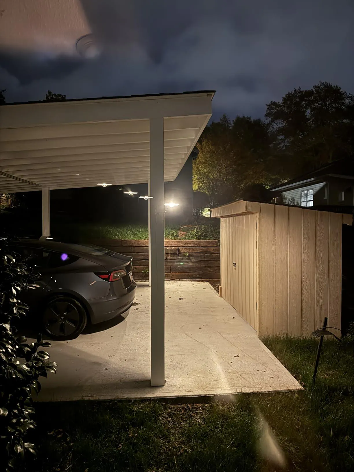 Slide to see how our solar wall sconce transform your garage from dim to dazzling at dusk